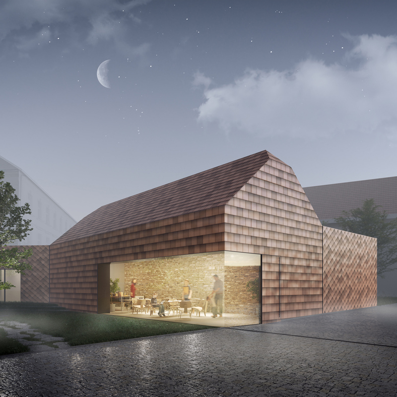 Od historické zástavby jsme se odlišili použitím jednotného materiálu v exteriéru, který dodává stavbě současný výraz. Výsledkem je architektonická parafráze, která nenarušuje autenticitu místa, ale zároveň jednoznačně odráží současný přístup k dialogu mezi historií a moderní architekturou.