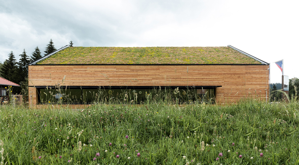 Dům prezentující unikát zdejší přírody nemůže být z logiky věci jiný, než v nejvyšším ekologickém standardu s nízkoenergetickým statutem. Proto byla pro obvodový plášť použitá výhradně dřevěná konstrukce s ekologickým izolantem. Tato slupka tímto způsobem splňuje nejlepší tepelně technické vlastnosti, protože sám dřevěný konstrukční materiál má velký tepelný odpor. Ve spojitosti s tepelným izolantem dostáváme velmi kvalitní izolační obvodový plášť.