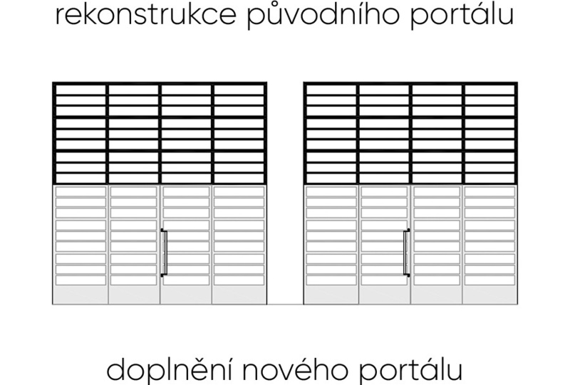 Prvky, které zcela scházejí, ale lze dohledat jejich původní vzhled nebo pro ně existuje předloha na jiném místě v objektu, mají být doplněny. Podobně jsme postupovali u spodní části vstupního portálu, u kterého se navíc podařilo skrýt nový otevírací pohon pod podlahu a zachovat tak původní čistotu produktu.