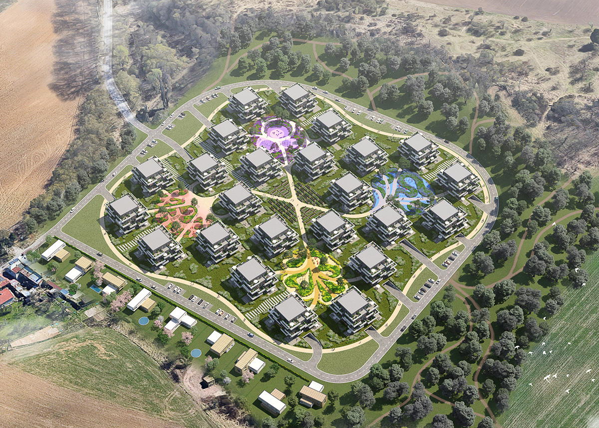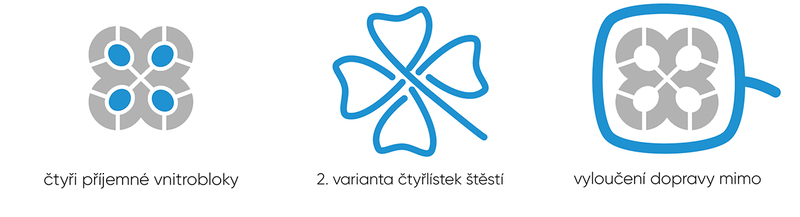 Tvar další varianty celého souboru připomíná čtyřlístek – odtud symbolický název bytového souboru: „mít štěstí“, tedy „rakkíni“. Na přirozené propojení člověka s přírodou dále odkazuje tematické odlišení pěti vnitřních náměstí, kdy každé reprezentuje jeden z pěti přírodních živlů: zemi, vodu, dřevo, kov a oheň.