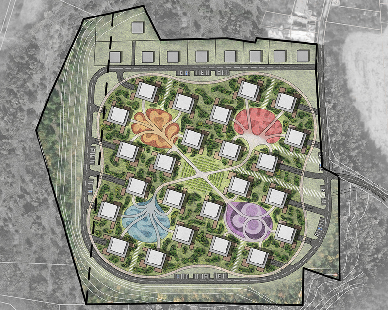 Chráněné údolí, které vzniká v areálu bývalé cihelny úpravou terénu, nabízí potenciál sídelního rozvoje. Dvě varianty řešení vtahují bohatou přírodu z okolí lokality přímo mezi plánovaná obydlí. Názvy variant jsme si propůjčili z japonské kultury, jejíž různorodý a bohatý vztah k přírodě a k člověku samotnému byl pro nás inspirací.