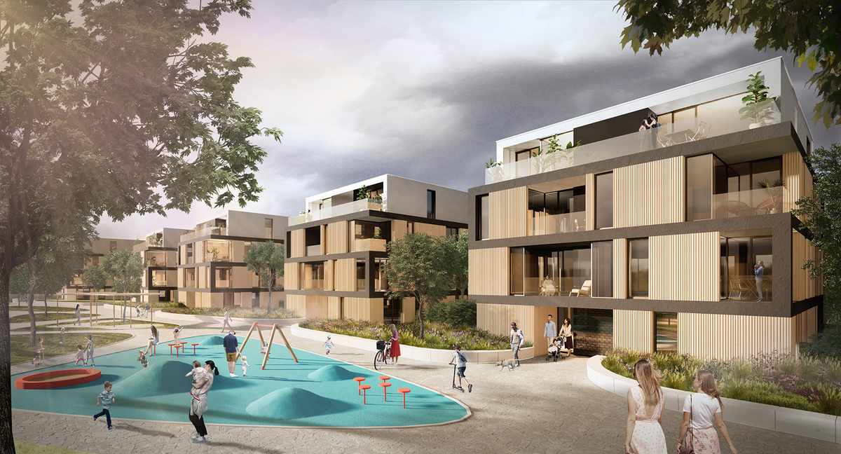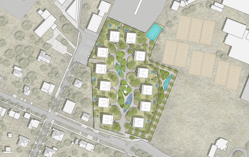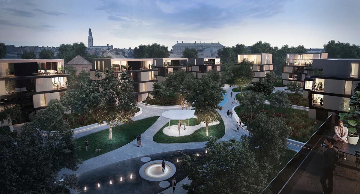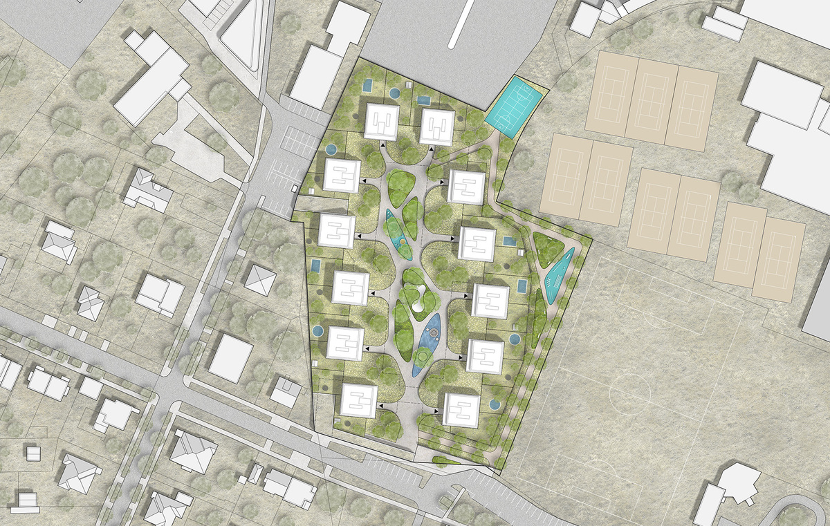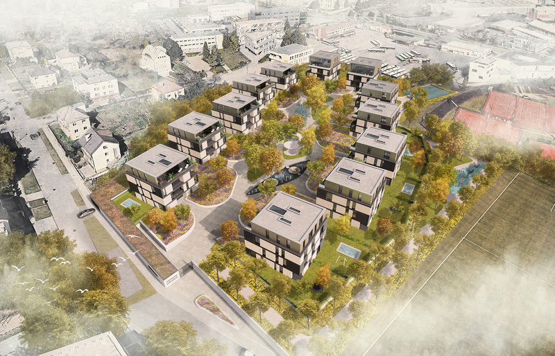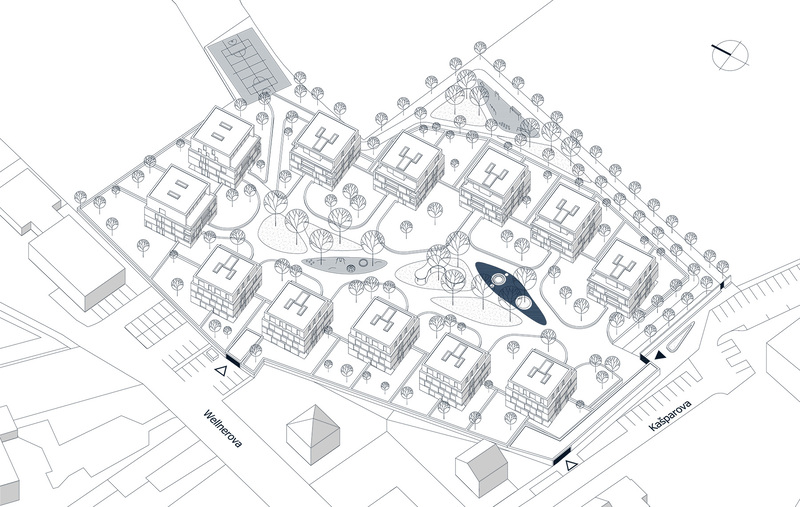 Umístění bytových domů kolem parku vytváří bezpečné a klidné místo k životu. Budovy jsou od veřejně přístupných částí areálu odstíněny zahrádkami a pásy parkové vegetace. Nová čtvrť přiléhá ke sportovně-rekreační oblasti Olomouce a má skvělou návaznost na centrum.