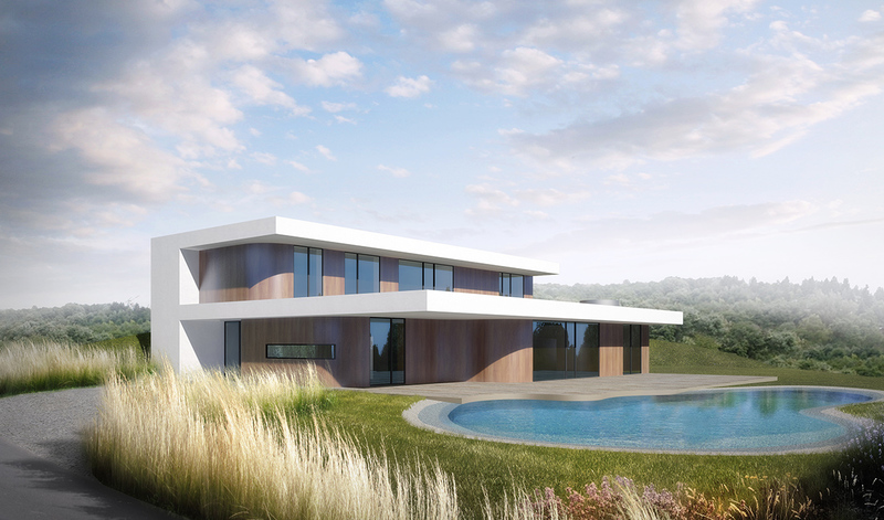 V našich geografických podmínkách je vodní hladina vzácnost, a snad proto má na nás tak magický účinek. Místo určené pro rodinnou vilu je v blízkosti velkého jezera, což silně ovlivnilo koncept stavby otvírající se vůči proudící energii, a výhledu na vodní plochu.