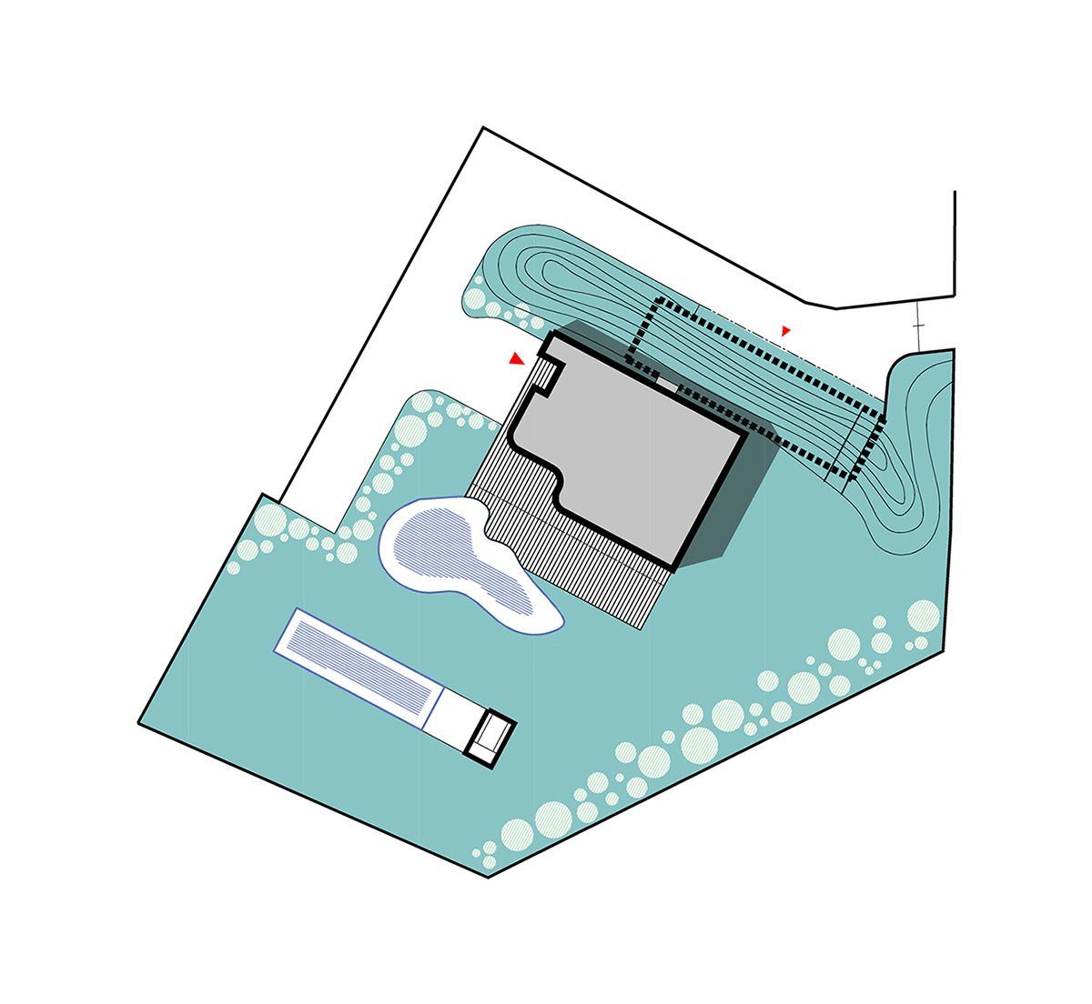 Navrhovaná vila ve svém profilu a půdorysu vyjadřuje hlavní koncept, který je založen na vztahu s vodní hladinou jezera. Dům je orientován na vodu a plně se jí otevírá. Od opačné strany se naopak distancuje a chrání si svůj svébytný prostor.